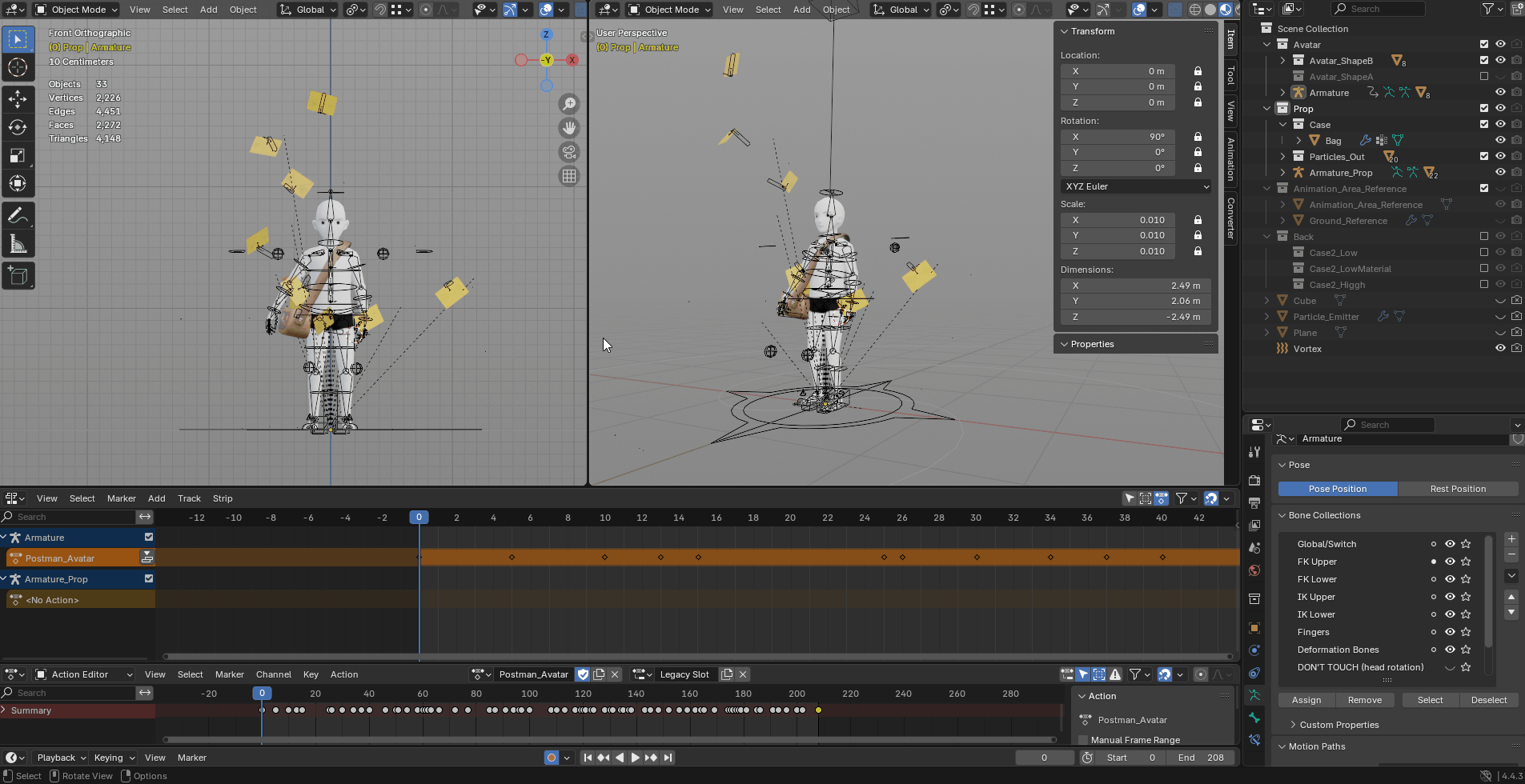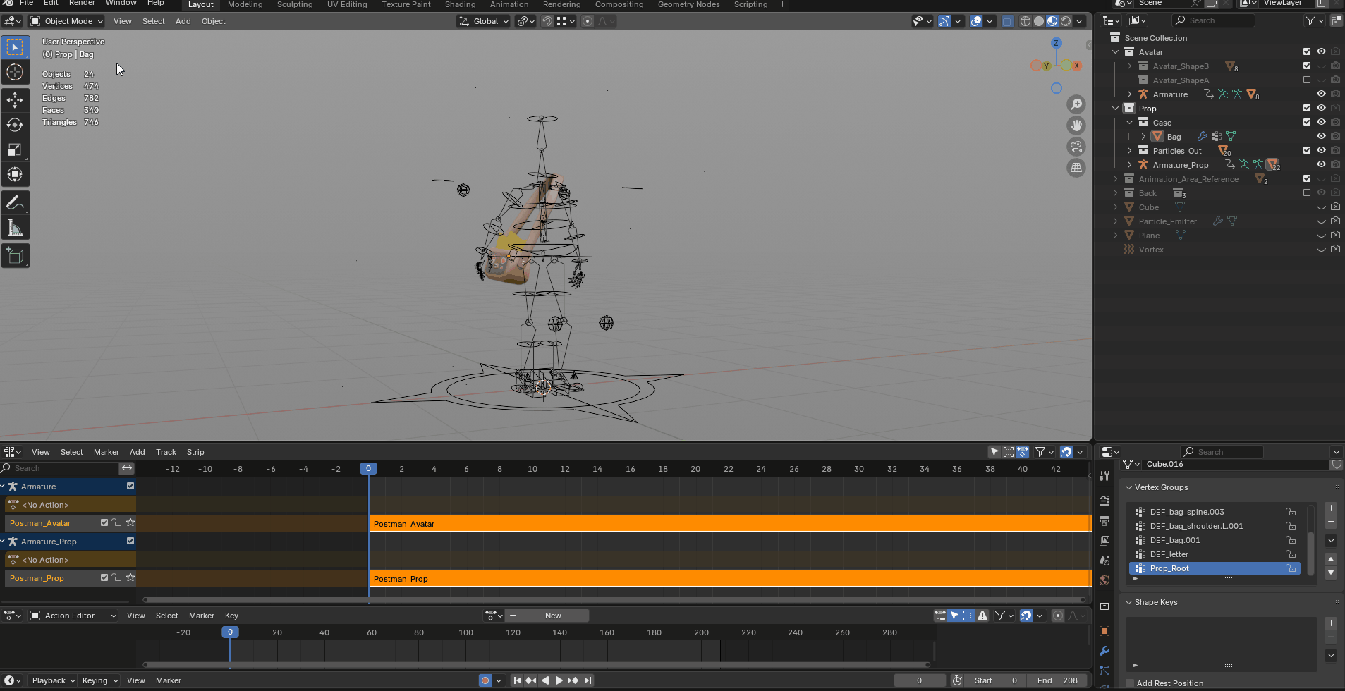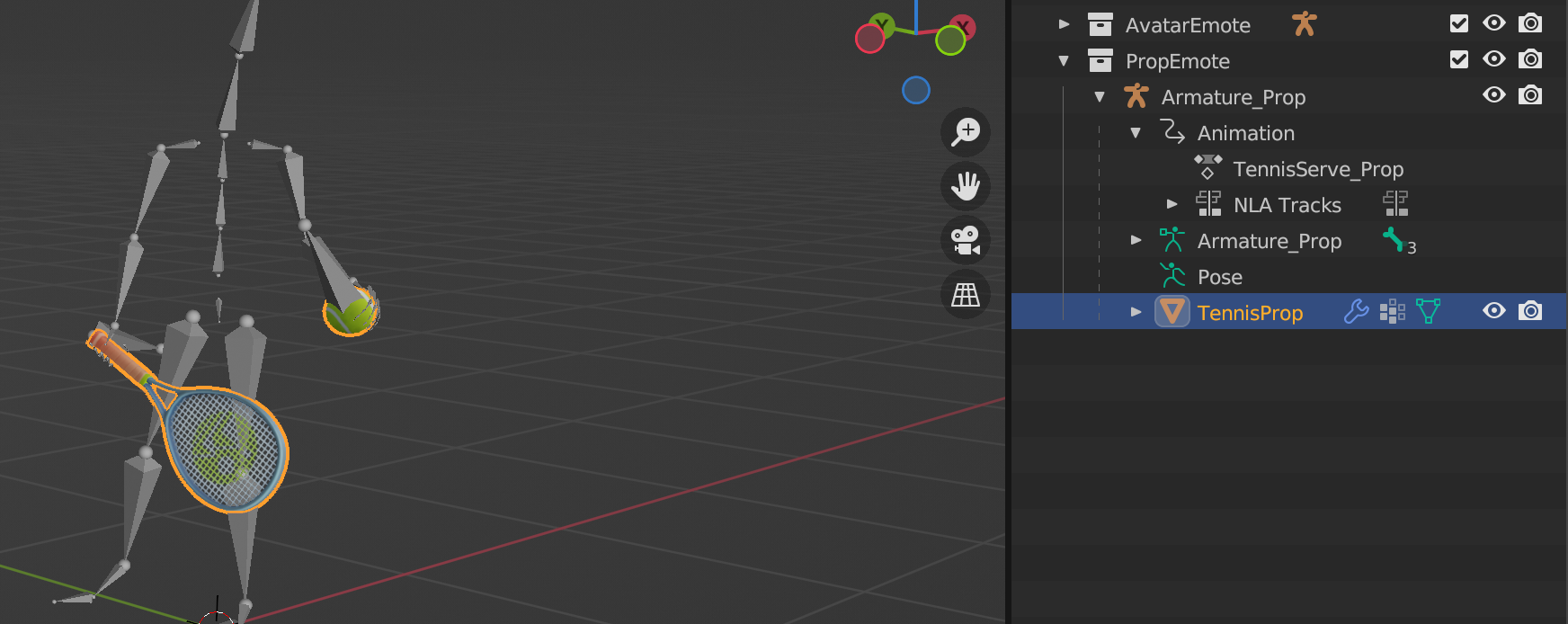 Even though it’s possible to have both the avatar and prop sharing the same action clip, because of the naming convention and number of animation clips involved in Emotes 2.0, it won’t work. So the pipeline for this would be: