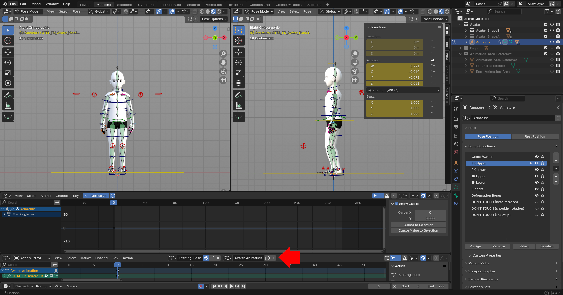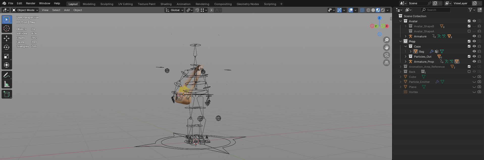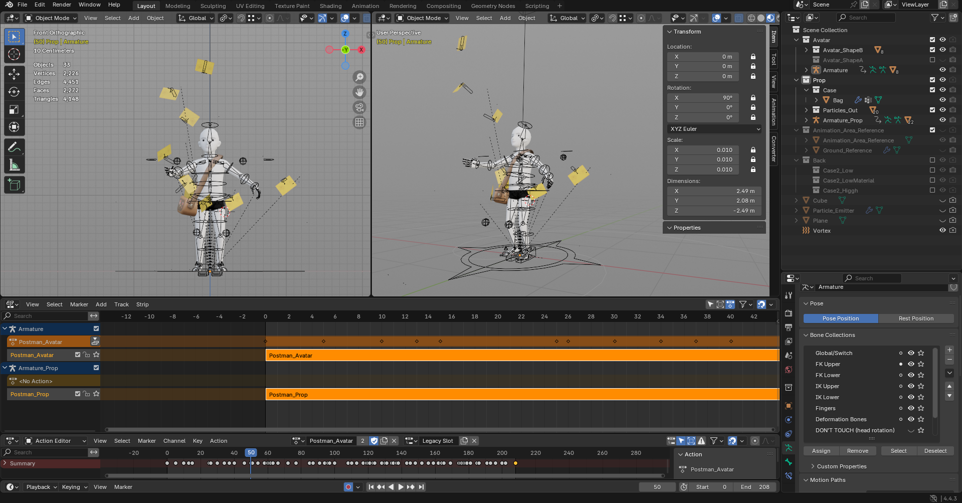 Even though it’s possible to have both the avatar and prop sharing the same action clip, because of the naming convention and number of animation clips involved in Emotes 2.0, it won’t work. So the pipeline for this would be:
