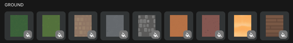 The scene’s ground can use various different textures. You can find these in the different themed asset packs in the item menu.
