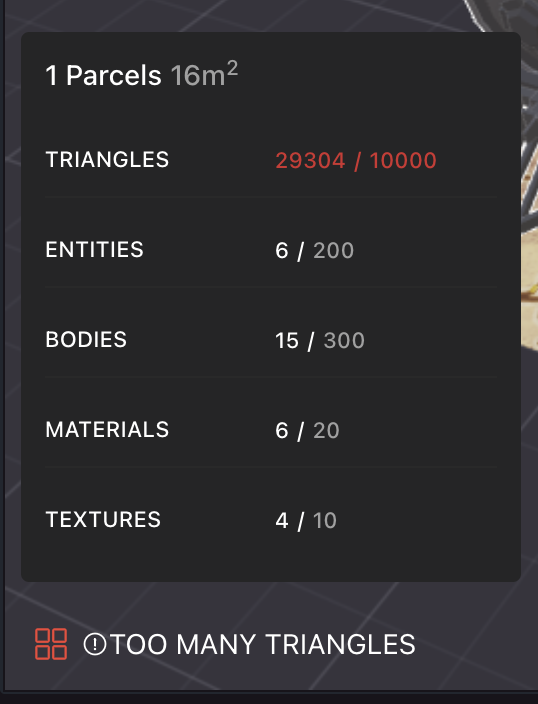 💡 Tip: If you’re building a Decentraland World, you can always increase the scene size to increase your limits.