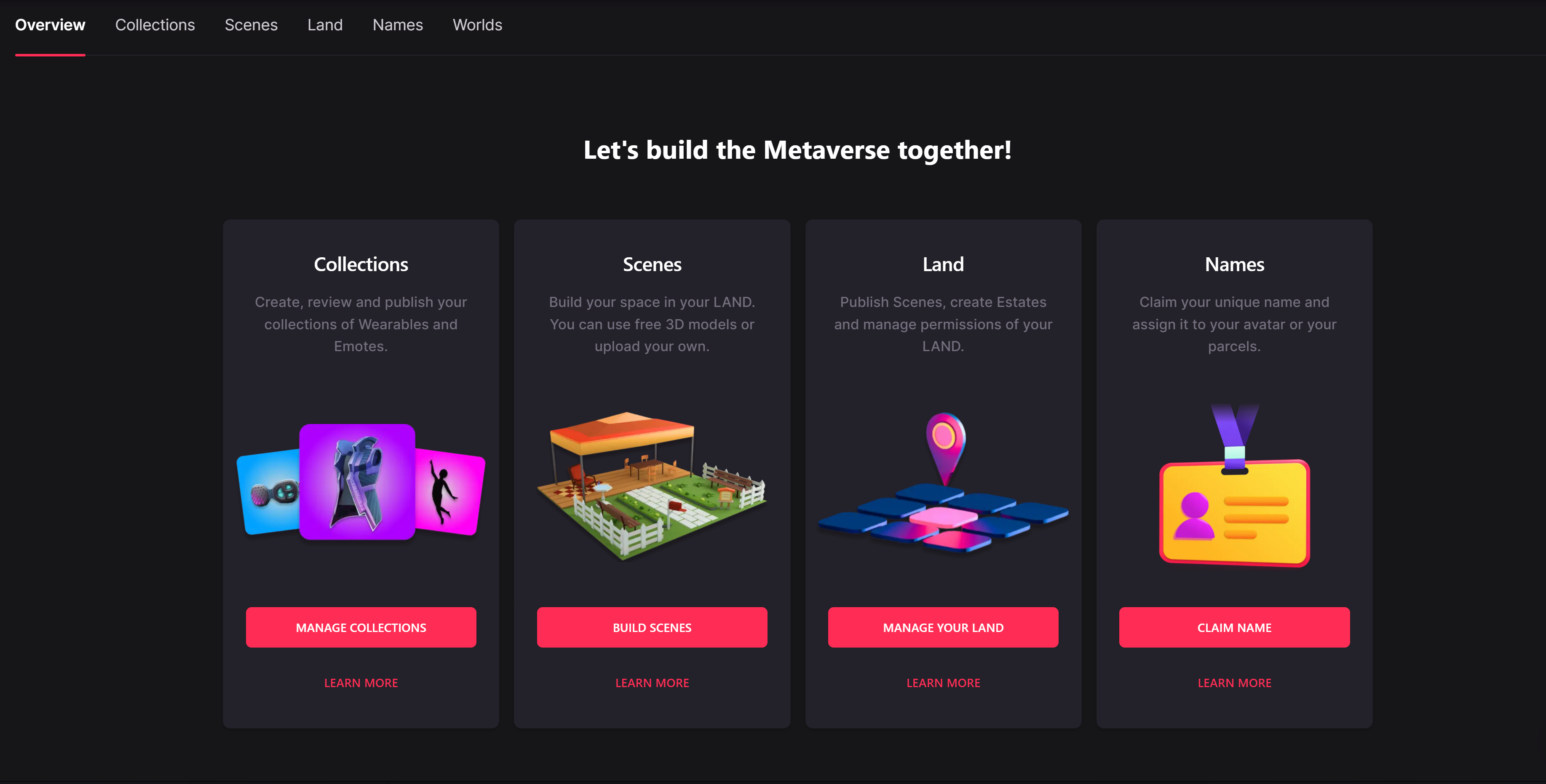 By clicking on one of the parcels or Estates listed under Land, you can edit its name, description, set an operator, or transfer it directly to another wallet address.